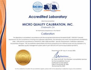 Through the A2LA Certification TMI is able to provide accredited calibration to: